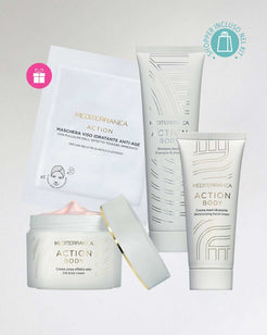 Un kit speciale corpo dalla detersione al trattamento per regalare una vera coccola. Action body Shampoo doccia, ideale per tutta la famiglia garantisce una detersione delicata di corpo e capelli. Arricchito da uno zucchero naturale che aiuta a preservare l'idratazione e un profumo agrumato vanigliato lascerà sulla pelle una sensazione di dolce vitalità. Action body Crema corpo effetto seta è caratterizzata da una texture particolarmente soffice e spumosa che idrata e avvolge la pelle in una nuvola di profumo delicato alla rosa. Un'esperienza sensoriale per la pelle del corpo per concedersi un momento di relax. Per la cura delle mani Action body Crema mani idratante che attenua screpolature e secchezza per una pelle sempre morbida e idratata. In omaggio, una maschera in tessuto monouso, Maschera viso idratante anti-age della linea Action per un "effetto bellezza" immediato. Nel tessuto è infuso una lozione arricchita da acido ialuronico e tetrapeptide per una pelle che appare più elastica e levigata. Incluso lo shopper per confezionare il tuo regalo.