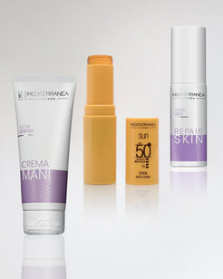 Tre prodotti ideali per proteggere la pelle da sole e freddo in inverno, indispensabili per gli sciatori, per chi ama andare in montagni o stare all'aria aperta. Pharma Stick solare SPF 50+ è un innovativo stick, dalla texture trasparente, che assicura un'ottima protezione contro i raggi UVA e UVB. Pensato per essere utilizzato su viso e corpo, in particolare sulle zone più sensibili come nei, macchie cutanee, orecchie, spalle. Facile da applicare, si assorbe facilmente ed è resistente all'acqua. Pharma Repair Skin Azione Urto è un trattamento SOS indispensabile per uso quotidiano o in caso di necessità. Rigenera la pelle secca e fragilizzata con un'azione protettiva e riparatrice profonda. Ideale per labbra, viso e zone specifiche del corpo con protezione solare media SPF 15. Compresa nel prezzo Pharma Crema mani (tubo 100 ml) lenitiva e riparatrice.